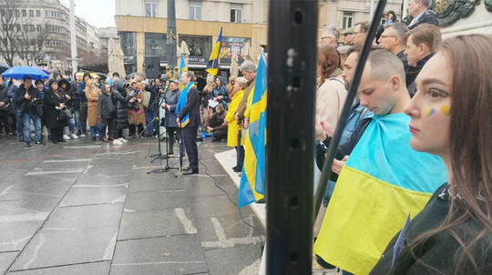 Manifestaţii au avut loc şi în Serbia, la Belgrad, unde câteva sute de sârbi şi cetăţeni ruşi - care au ales exilul după declanşarea Războiului din Ucraina - s-au alăturat unei manifestaţii conduse de către ambasadorul Ucrainei.