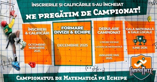 CampioMATE – Campionatul naţional de matematică pe echipe - program educaţional inspirat din sport şi jocuri video, ajuns în acest an şcolar la cea de-a cincea ediţie, a derulat în octombrie – noiembrie înscrierile şi calificările pentru noul sezon.