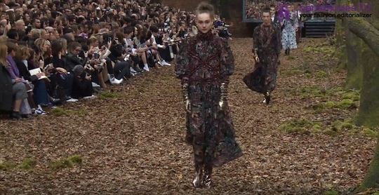 Creatorul de modă german a transformat Grand Palais într-o pădure, cu frunze de copaci şi cu nouă stejari acoperiţi cu muşchi.