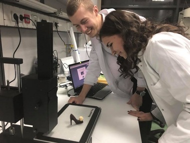 Doi studenţi ai Facultăţii de Ştiinţa şi Tehnologia Alimentelor au realizat, în premieră la Universitatea de Ştiinţe Agronomice şi Medicină Veterinară din Cluj-Napoca, un pantof din ciocolată cu ajutorul unei imprimante 3D.