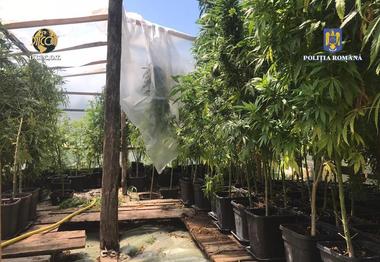 În cadrul percheziţiilor, într-una din locaţii, poliţiştii şi procurorii din Arad au descoperit o cultu[a indoor.