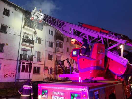 Focul, care s-a manifestat cu degajări importante de fum, a izbucnit într-un apartament situat la etajul 4.