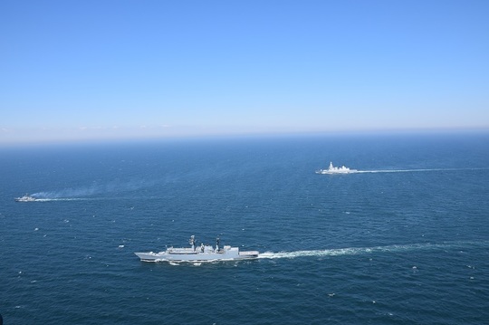 Fregata “Regele Ferdinand”, Nava Purtătoare de Rachete "Zborul" şi distrugătorul britanic ”Daring” au efectuat, marţi, un antrenament în comun pe mare, printre exerciţii numărându-se şi respingerea unui atac aerian, dar şi exerciţii de comunicaţii tactice.