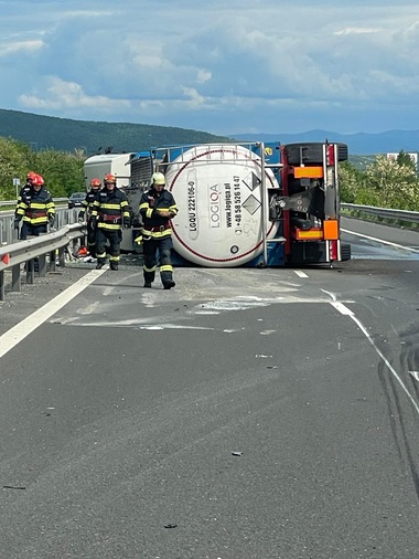 ”În urmă cu puţin timp, pompierii Detaşamentului Deva au fost solicitaţi să intervină la un accident rutier care a avut loc pe autostrada A1, km. 362, sens de mers Timişoara - Sibiu.