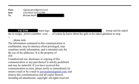 ”Trump a spus că voia să renunţ” la cardul de membru la Mar-a-Lago, reşedinţa din Florida a preşedintelui american, afirmă în acest e-mail Jeffrey Epstein.