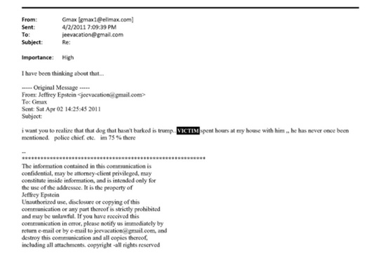 Textul - pe un ton obscen - are forma unui bust de femeie şi constă într-un dialog între Jeffrey Epstein şi Donald Trump.