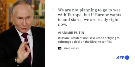Preşedintele rus Vladimir Putin dă asigurări marţi, cu puţin înainte de o întâlnire cu emisarul american Steve Witkoff şi Jared Kushner, la kremlin, că nu vrea un război cu Europa, dar declară că este ”pregătit” de un război, dacă europenii ”îl vor şi încep”, relatează AFP.