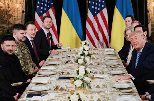 Între ei se afla emisarul lui Donald Trump în Orientul Mijlociu Steve Witkoff, secretarii de Stat Marco Rubio, al Apărării Pete Hegseth, şeful Statului major Interarme Dan Caine, adjunctul consilierului Casei Albe însărcinat cu politici Stephen Miller, şefa de cabinet a lui Donald Trump Susie Wiles, ginerele preşedintelui Jared Kushner şi comisarul Serviciului de achiziţii federale de la Administraşia Serviciilor Generale Josh Gruenbaum, care a partickipat la negocieri cu Rusia săptîmâna trecută.