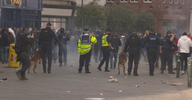 Violenţe au avut loc, iar împotriva poliţiştilor s-a tras cu focuri de artificii. Poliţia a luat cu asalt mulţimea în mai multe rânduri, agitând bastoane.