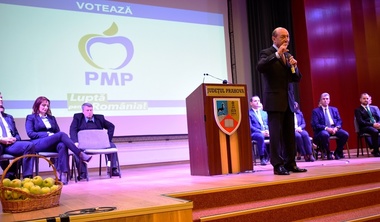 Manifestarea electorală a PMP s-a desfăşurat sub sloganul ”Luptăm pentru unire”, iar Traian Băsescu a avut un discurs axat pe unirea celor două ţări. Participanţii au scandat în mai multe rânduri ”Unire!”.