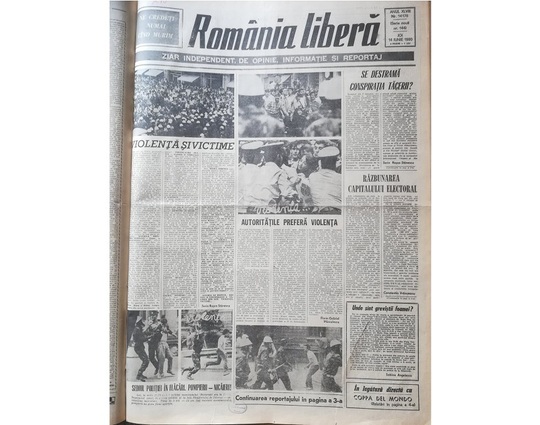 În urmă cu 30 de ani, acţiunea în forţă a autorităţilor pentru a îndepărta ultimii manifestanţi rămaşi în Piaţa Universităţii după protestul anticomunist maraton început în 22 aprilie 1990 instaura în centrul Capitalei violenţa şi teroarea, punctul culminant fiind atins odată cu venirea minerilor. Patru oameni au murit şi peste 1.300 au fost răniţi, În presa vremii, relatările despre ceea ce s-a întâmplat în 13 - 15 iunie oscilau între ”tentativă de lovitură de stat”şi ”dovada gravei crize morale” prin care trecea ţara având drept consecinţă ”întoarcerea la epoca de piatră”.