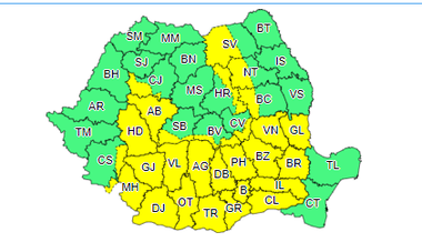 Meteorologii au emis, marţi, o avertizare cod galben de instabilitate atmosferică valabilă în 28 de judeţe, până la ora 22.00. Cantităţile de apă pot depăşi 40 de litri pe metru pătrat şi vor fi rafale de vânt şi grindină.