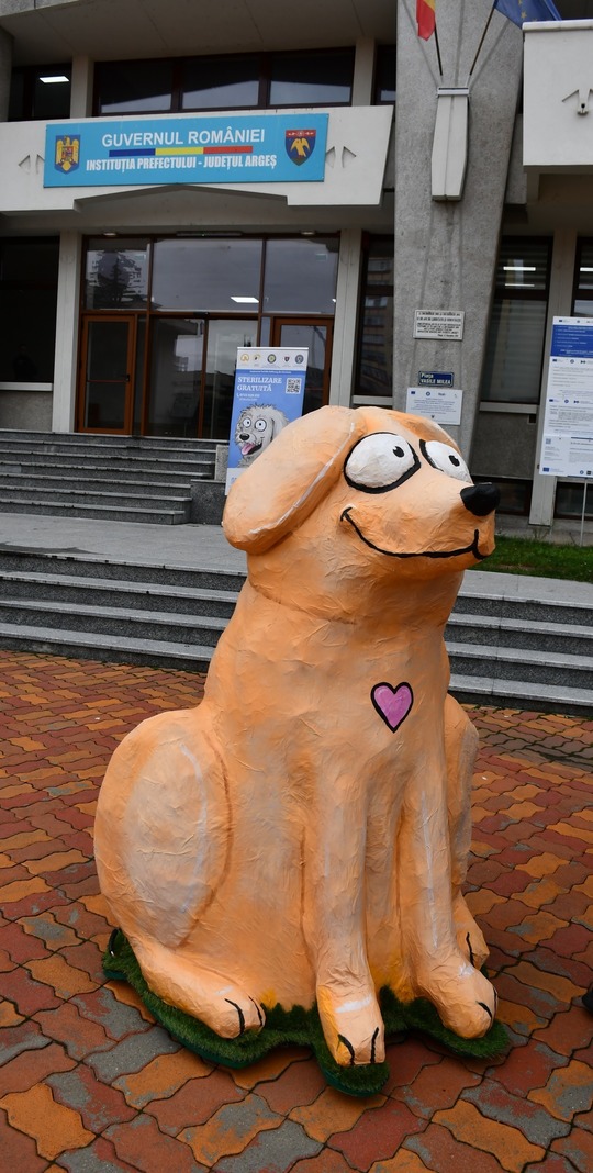 Consiliul Judeţean Argeş amplasează o mascotă de mari dimensiuni în Piteşti, susţinând că este un „căţeluş prietenos şi plin de viaţă”, care este simbolul campaniei de conştientizare privind importanţa sterilizării animalelor cu şi fără stăpân. Internauţii au reacţionat, unii transmiţând autorităţilor, printre altele, că ar trebui să facă ceva concret, pentru ca în România să nu mai există pui de animale abandonaţi, în timp ce alţii dau exemple concrete de administraţii locale în care spun că animalele fără stăpân sunt eutanasiate „pe sume exorbitante” plătite din bugetele publice.