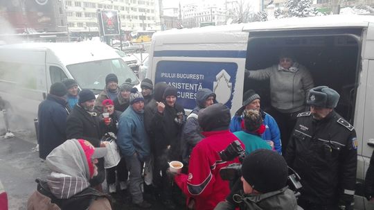 În jur de cincizeci de persoane fără adăpost s-au strâns, duminică, la Gara de Nord din Bucureşti, în jurul bucătăriilor mobile ale Direcţiei Generale de Asistenţă Socială, pentru a primi mâncare caldă, ceai şi haine groase. Primarul Capitalei, Gabriela Firea, şi primarul Sectorului 6, Gabriel Mutu, au împărţit personal sandvişuri şi ceai oamenilor străzii. Unii dintre aceştia au fost fericiţi de ajutorul primit, alţii, însă, s-au plâns de gustul mâncării, de faptul că nu primesc ajutor zilnic, deşi refuză, în acelaşi timp, să locuiască, în perioada iernii, la centrele sociale ale primăriei.