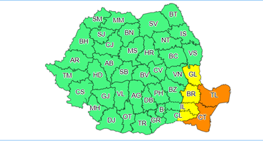 De asemenea, până miercuri la ora 21.00, este cod portocaliu de viscol şi vizibilitate redusă în judeţele Constanţa şi Tulcea.