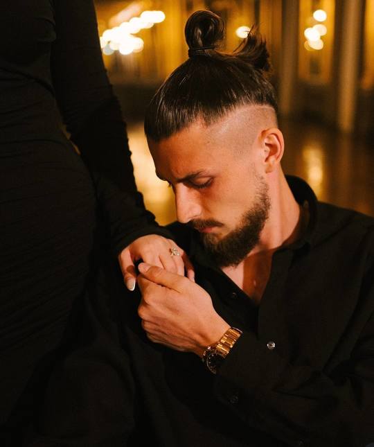 Jucătorul a postat mai multe imagini pe Instagram, în care apare alături de iubita ta Ioana Stan, care îşi prezintă inelul primit.